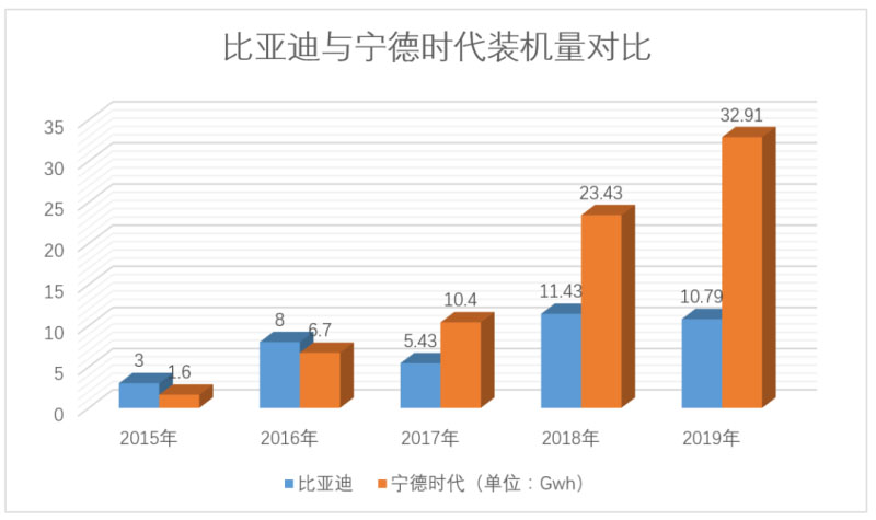 2017年,寧德時(shí)代完成對(duì)比亞迪的反超。