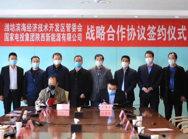 4月3日,山東省濰坊市濱海區(qū)與國(guó)家電投集團(tuán)陜西新能源有限公司清潔能源項(xiàng)目簽約儀式在未來(lái)大廈舉行。