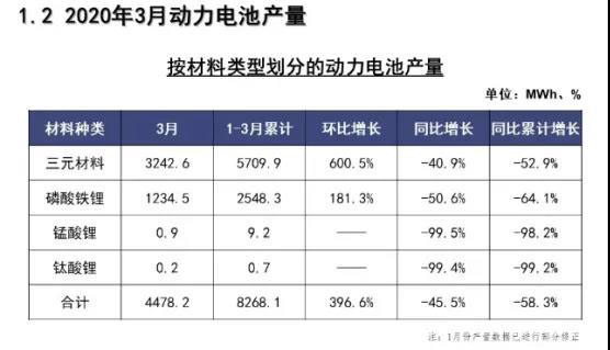 中國汽車動力電池產(chǎn)業(yè)創(chuàng)新聯(lián)盟同日發(fā)布了新能源汽車動力電池月度數(shù)據(jù),3月我國動力電池產(chǎn)量共計4.5GWh,同比下降45.5%,環(huán)比增長396.6%。其中三元電池產(chǎn)量3.2GWh,占總產(chǎn)量72.4%,同比下降40.9%,環(huán)比增長600.5%;磷酸鐵鋰電池產(chǎn)量1.2GWh,占總產(chǎn)量27.6%,同比下降50.6%,環(huán)比增長181.3%。