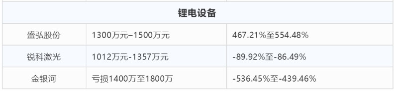 如當(dāng)升科技凈利預(yù)計同比下滑了45.39%至53.19%,鋰電正極材料業(yè)務(wù)和智能裝備業(yè)務(wù)銷量及收入均出現(xiàn)下降;金冠股份虧損1100萬-1600萬,鋰電隔膜業(yè)務(wù)所處行業(yè)整體波動劇烈,相關(guān)業(yè)務(wù)銷售收入同比顯著下降。