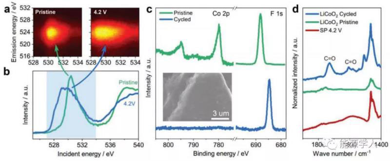 在本文中,中科院物理所李泓研究員、禹習謙研究員、白雪冬研究員等課題組提出高壓驅(qū)動PEO‐SPEs氧化會導致可接受的反應極化,然而這并不能完全解釋在高充電電壓下氧化物正極與固態(tài)聚合物電池直接存在的巨大界面電阻。因此作者進行了詳細的實驗,結(jié)果表明,PEO基固態(tài)電池和高壓層狀氧化物正極不相容的根本原因是氧化物正極中的高催化氧,而不是SPEs的窄熱力學EWs。根據(jù)該發(fā)現(xiàn),作者通過以下兩種策略成功地實現(xiàn)了含有PEO-SPE的4.2V固態(tài)聚合物鋰電池穩(wěn)定運行:1) 通過表面涂層抑制層狀氧化物正極材料中的表面氧活性,例如Li1.4Al0.4Ti1.6(PO4)3(LATP)涂覆LiCoO2;2) 利用非氧氧化還原活性的4V級正極,例如LiFe1‐xMnx(PO4)。本工作揭示了PEO基固態(tài)電池在高壓下的固有失效機理,為固態(tài)電池在高能量密度應用中的合理設計提供了依據(jù)。
