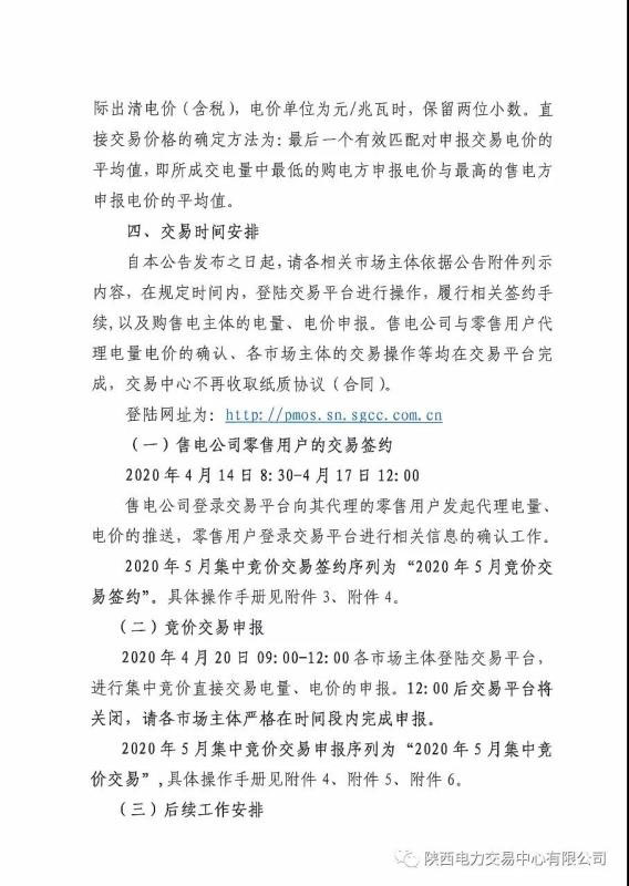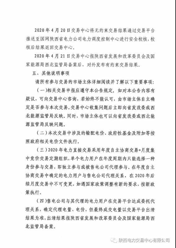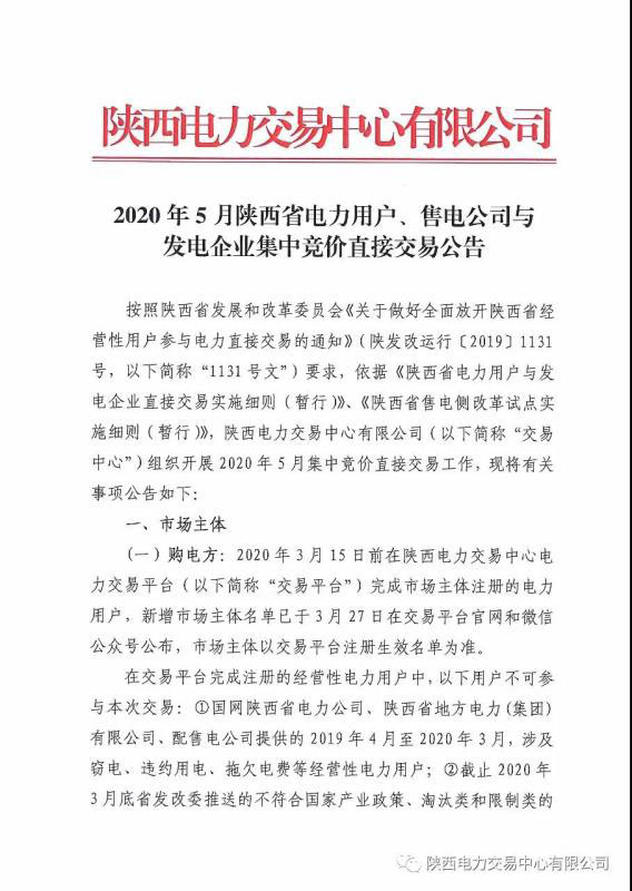 2020年5月陜西省電力用戶、售電公司與發(fā)電企業(yè)集中競價(jià)直接交易公告