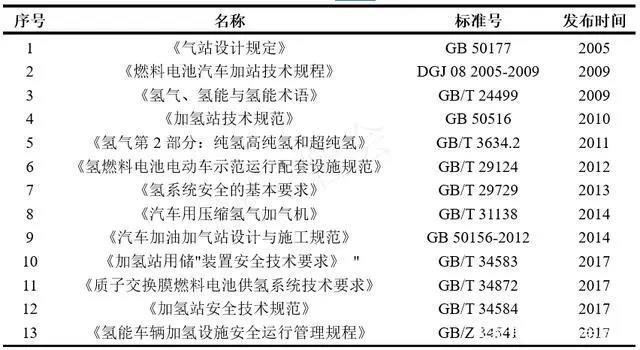 表 加氫站相關(guān)標準