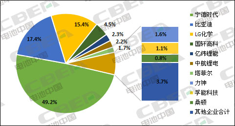 圖2:2020年一季度國(guó)內(nèi)動(dòng)力電池裝機(jī)量TOP10的企業(yè)占比