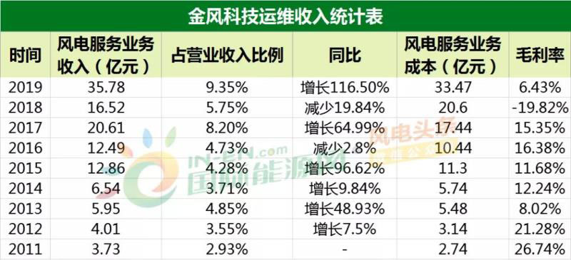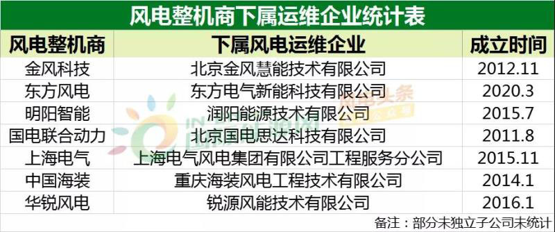 除了宏觀風(fēng)電運維市場的統(tǒng)計之外,風(fēng)電整機(jī)企業(yè)提供風(fēng)電運維帶來的收入也在水漲船高。