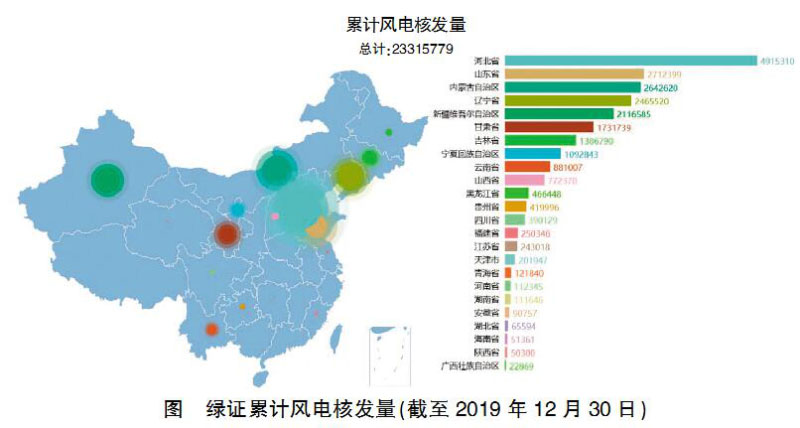 至此,在我國可再生能源電力配額考核方面,形成了可再生能源電力消納責(zé)任權(quán)重(簡(jiǎn)稱“消納責(zé)任權(quán)重”)和綠色電力證書(簡(jiǎn)稱“綠證”)相結(jié)合的實(shí)施辦法體系。從綠證實(shí)際交易情況來看,由于自愿認(rèn)購對(duì)認(rèn)購方刺激作用不強(qiáng),綠證認(rèn)購情況慘淡。截至2019年12月30日,累計(jì)風(fēng)電核發(fā)量高達(dá)23315779兆瓦時(shí),累計(jì)光伏交易量?jī)H為25818兆瓦時(shí);累計(jì)風(fēng)電核發(fā)量高達(dá)3839236兆瓦時(shí),累計(jì)光伏交易量?jī)H為160兆瓦時(shí)(見圖)。