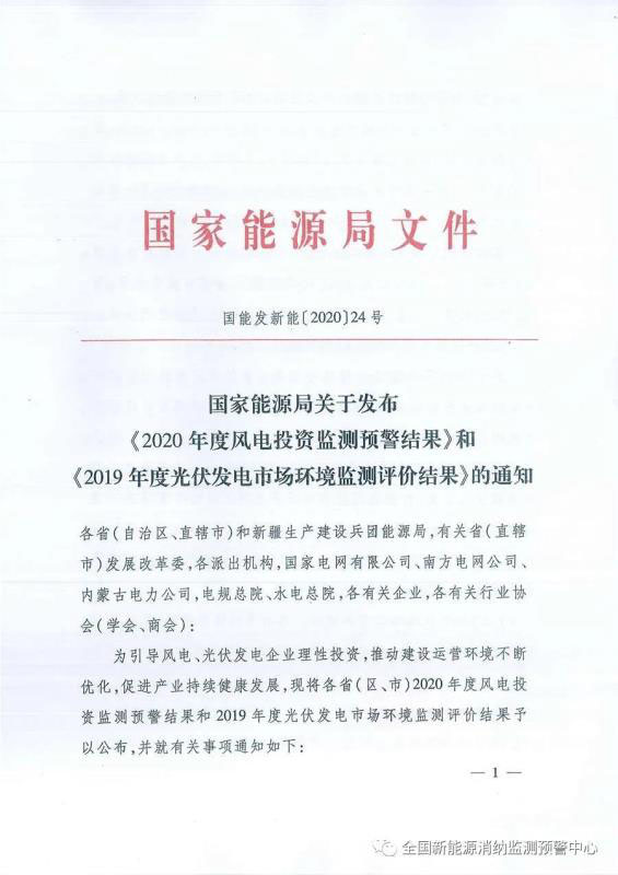 附:國家能源局關(guān)于發(fā)布《2020年度風(fēng)電投資監(jiān)測預(yù)警結(jié)果》和《2019年度光伏發(fā)電市場環(huán)境監(jiān)測評價(jià)結(jié)果》的通知