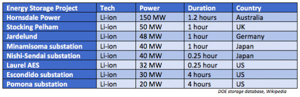表:全球最大的鋰離子電池儲能項(xiàng)目-額定容量