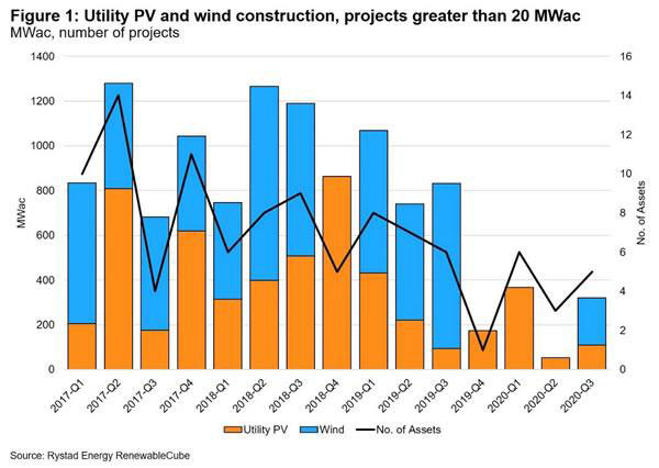 目前,530 MW的光伏發(fā)電和210 MW的風(fēng)能發(fā)電已經(jīng)暫停,這些項目有些或者已經(jīng)開始建設(shè),或計劃在2020年開始建設(shè)。新冠肺炎可能會導(dǎo)致項目延遲或取消。剩余的項目將面臨財務(wù)風(fēng)險。