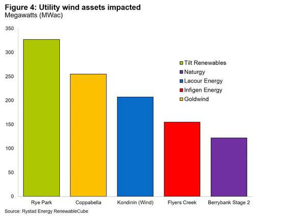 這導(dǎo)致公用事業(yè)光伏和風(fēng)能項目的資本支出增加,使曾經(jīng)可行的項目不再經(jīng)濟。新南威爾士州將是最大的輸家,因為65%的太陽能光伏發(fā)電和67%的風(fēng)電項目位于該州,這些風(fēng)電項目預(yù)計將實現(xiàn),但尚未在2020年完成融資。受影響最大的公用事業(yè)光伏公司包括UPC,Neeo,Wollar Solar和Canadian Solar,而Tilt和Goldwind將在公用事業(yè)風(fēng)能領(lǐng)域受到最大影響。