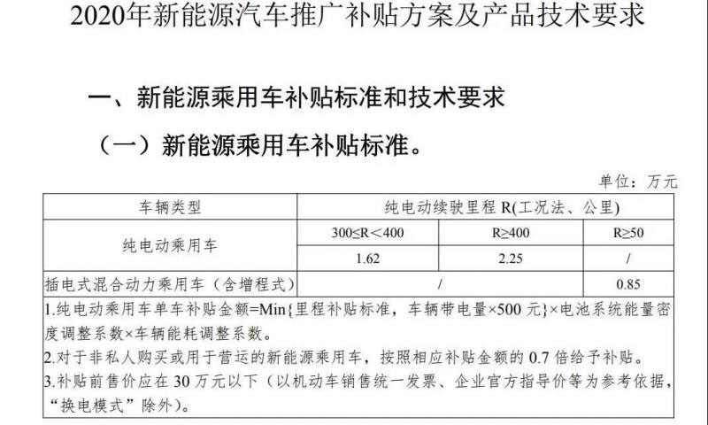 《通知》規(guī)定,新能源乘用車(chē)補(bǔ)貼前售價(jià)須在30萬(wàn)元以下(含30萬(wàn)元),才有資格享受補(bǔ)貼政策。2020年4月23日至2020年7月22日的過(guò)渡期期間,符合2019年技術(shù)指標(biāo)要求但不符合2020年技術(shù)指標(biāo)要求的銷(xiāo)售上牌車(chē)輛,按照《關(guān)于進(jìn)一步完善新能源汽車(chē)推廣應(yīng)用財(cái)政補(bǔ)貼政策的通知》(財(cái)建〔2019〕138號(hào))對(duì)應(yīng)標(biāo)準(zhǔn)的0.5倍補(bǔ)貼,符合2020年技術(shù)指標(biāo)要求的銷(xiāo)售上牌車(chē)輛按2020年標(biāo)準(zhǔn)補(bǔ)貼。補(bǔ)貼車(chē)輛限價(jià)規(guī)定過(guò)渡期后開(kāi)始執(zhí)行。