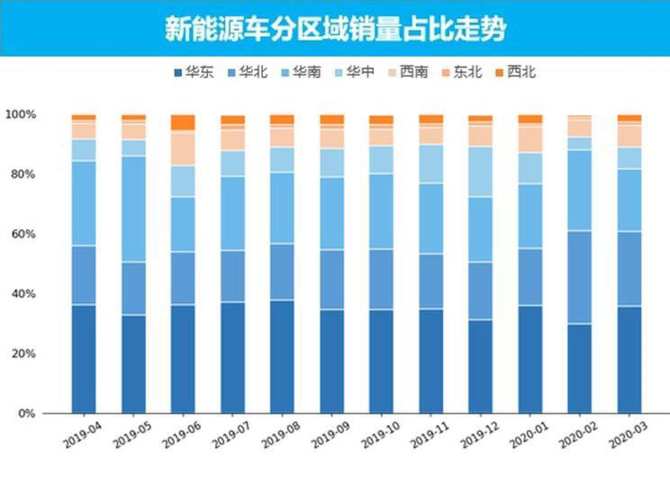 3月新能源車銷量最高的三個區(qū)域為華東、華北、華南地區(qū),合計銷量達到了3.8萬輛,其合計占比也達到了82.0%,這些區(qū)域為我國主要新能源銷售區(qū)域,同樣沿海地區(qū)也是人口密集型區(qū)域,因此有足夠強的汽車消費能力。銷量最低的區(qū)域為東北地區(qū),銷量僅為586輛,新能源車在充電及使用方面受到低溫影響,因此東北地區(qū)整體銷量較少。