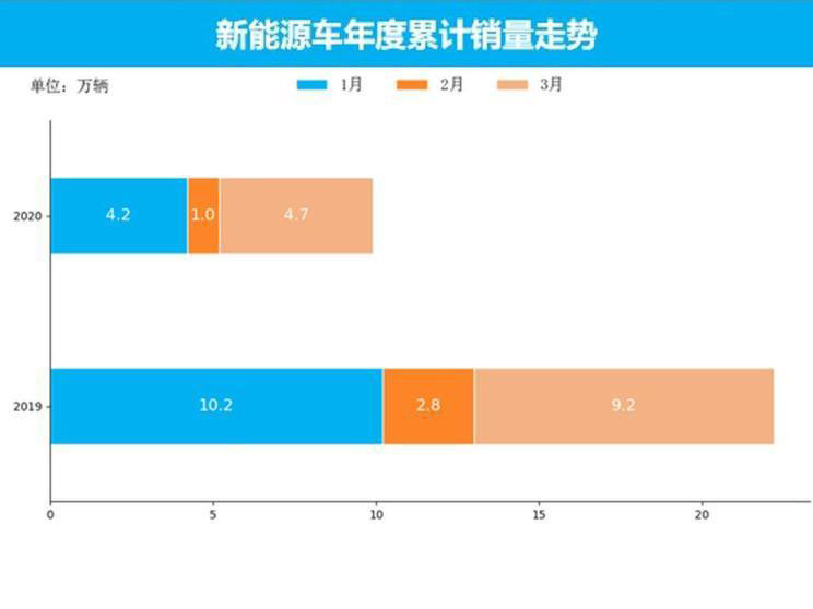 從累計銷量數(shù)據(jù)來看,2020年1-3月,新能源車?yán)塾嬩N量為9.8萬輛,同比累計下跌55.8個百分點,較去年同期相比,新能源車?yán)塾嬩N量大幅下跌。同上個月累計變化相比,變化比1-2月累計提高4.8個百分點。不過,整體來看,預(yù)計接下來的市場增長并不十分樂觀。