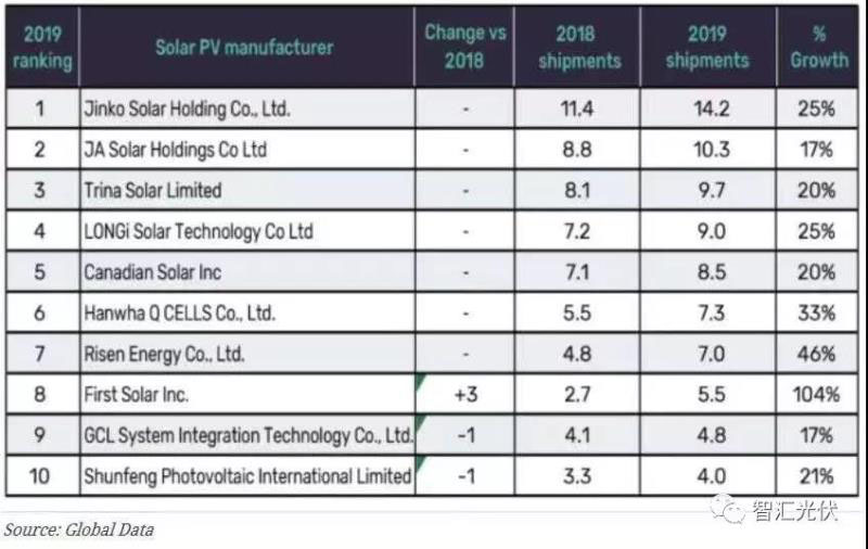 1、2019年中國(guó)光伏組件出貨量排名