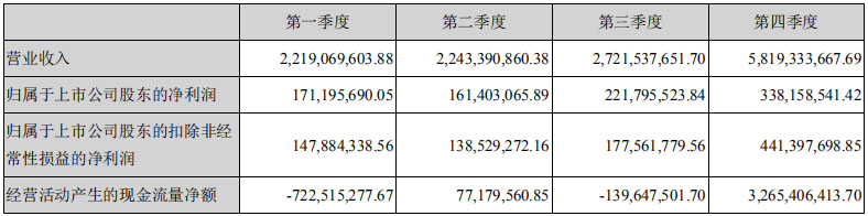根據(jù)財報,2019年陽光電源各個板塊業(yè)務均取得正向增長,尤其海外業(yè)務實現(xiàn)營收32.7億元,同比增長超過1倍。海外業(yè)務回款條件更好,帶動公司銷售回款能力大幅度提升,經(jīng)營性現(xiàn)金流暴增超過12倍,至24.8億元,創(chuàng)歷史新高。
