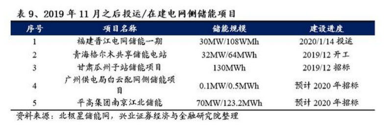 盡管2019年國家發(fā)改委明確電網(wǎng)側(cè)儲能不能計入輸配電價成本,導(dǎo)致電網(wǎng)側(cè)儲能發(fā)展態(tài)勢遭遇急剎車,但我們依然認為電網(wǎng)側(cè)儲能具有旺盛的生命力。2019年下半年以后仍有若干電網(wǎng)側(cè)儲能投運或繼續(xù)推進。比如青海開創(chuàng)性地采用了共享儲能項目模式,裝機規(guī)模32MW/64MWh,已于2019年12月開建,其由上海電氣作為獨立主體建設(shè),擬完全依靠市場化運營,無需通過輸配電價疏導(dǎo)。