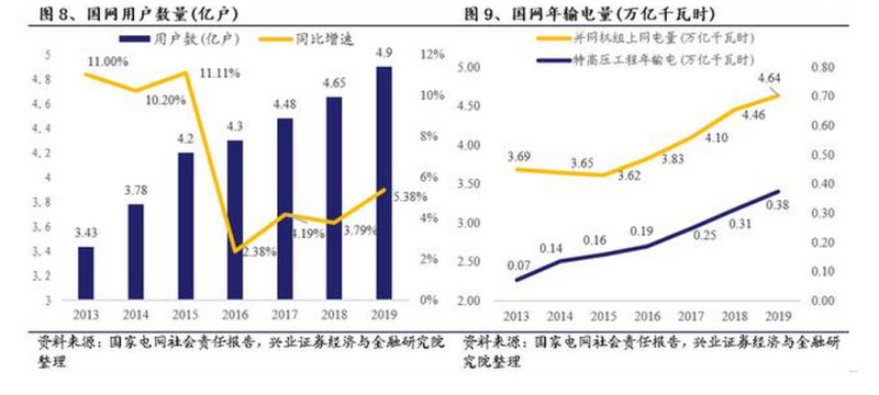 國家電網(wǎng)電力系統(tǒng)基礎(chǔ)設(shè)施建設(shè)力量雄厚,國網(wǎng)車聯(lián)網(wǎng)平臺目前累計接入充電樁43萬個,年增長率始終保持在50%以上,變電設(shè)備容量自2013年以來實現(xiàn)了7.28%的年平均增長率,目前總?cè)萘窟_49.4億千瓦,電力基礎(chǔ)設(shè)施規(guī)模未來將繼續(xù)擴大。國網(wǎng)用戶數(shù)量達4.9億戶,年輸電量高達4.64萬億千瓦時,占據(jù)國內(nèi)售電量的絕大部分。國家電網(wǎng)實力強勁,手握海量基礎(chǔ)設(shè)施及數(shù)據(jù)。