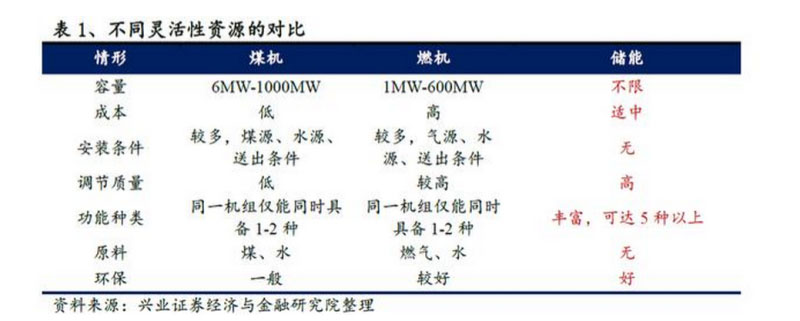 電儲能是最優(yōu)質(zhì)的靈活性資源。電力靈活性資源的供應(yīng)主體較少,傳統(tǒng)主體為煤電、燃機,近年來出現(xiàn)了新的主體——電儲能。相對于前兩種資源,儲能具備優(yōu)異的調(diào)節(jié)性能,靈活的安裝方式、高質(zhì)量的調(diào)節(jié)能力、環(huán)保等多種優(yōu)勢,必將成為未來最主要的靈活性資源。