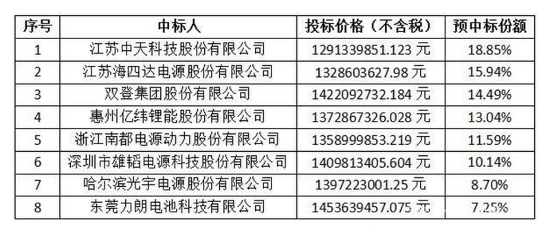 4月29日,中國(guó)移動(dòng)公布2020年通信用磷酸鐵鋰電池產(chǎn)品集中采購(gòu)公布招標(biāo)結(jié)果,中天科技、海四達(dá)、雙登、億緯鋰能、南都電源、雄韜股份、光宇電源、力朗電池等8家企業(yè)預(yù)中標(biāo)。