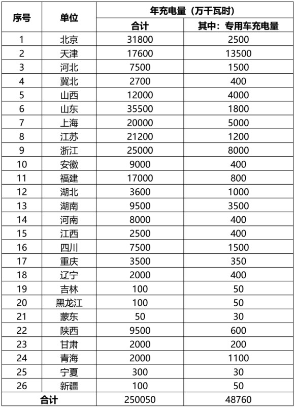 2. 公司2020年電動汽車充電量目標(biāo)分解表