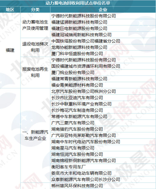 中國儲能網(wǎng)訊:近日,福建工信局、發(fā)改委等九部門聯(lián)合印發(fā)《福建省開展新能源汽車動力蓄電池回收利用體系建設(shè)實施方案(2020-2022年)》。擬以寧德時代、中國鐵塔、科華恒盛等一批企業(yè)為示范試點,開展動力電池回收梯次利用項目應(yīng)用。