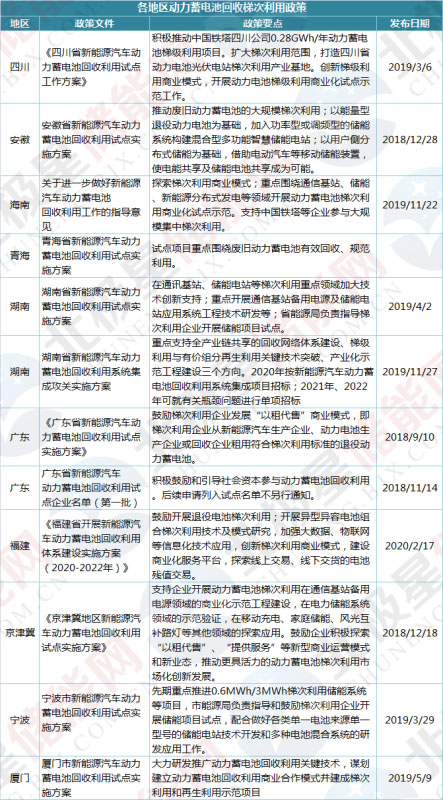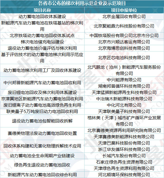 北極星儲能網(wǎng)統(tǒng)計,全國已有九個省市地區(qū)發(fā)布了動力電池回收梯次利用相關(guān)政策,并有150多家企業(yè)被選擇為示范試點企業(yè),率先開展相關(guān)研究應(yīng)用及商業(yè)模式探索。