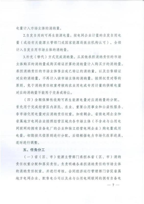 根據(jù)文件,消納責(zé)任權(quán)重主要履行方式為購買或自發(fā)自用可再生能源電力,購買其他市場主體超額完成的消納量或綠色電力證書為補(bǔ)充履行方式。