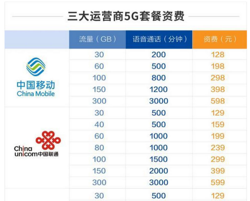 2019年10月底,三大運(yùn)營(yíng)商公布了5G套餐資費(fèi)。
