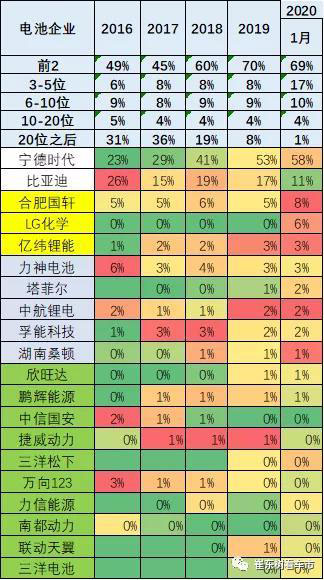 由于前兩位的裝機(jī)增長,3~5位的電池企業(yè)份額相對下降,從2018年的8%下降到2019年的8%,但松下和LG的電池進(jìn)入較強(qiáng),其他的中間企業(yè)下降幅度目前不大。