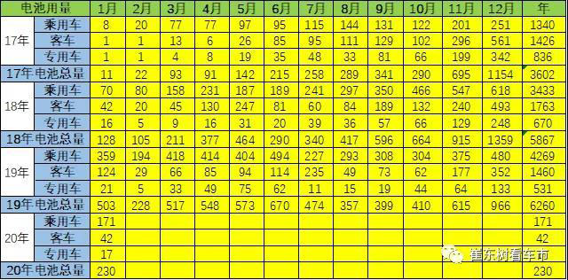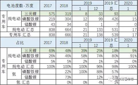 此表的分類的電池對應(yīng)的專用車車包含了微客和輕客,微卡和輕卡等各類以5字頭的車型為主。由于磷酸鐵鋰的資源充足,價(jià)格低,加之使用范圍越來越窄,因此不如三元電池的需求旺盛。。