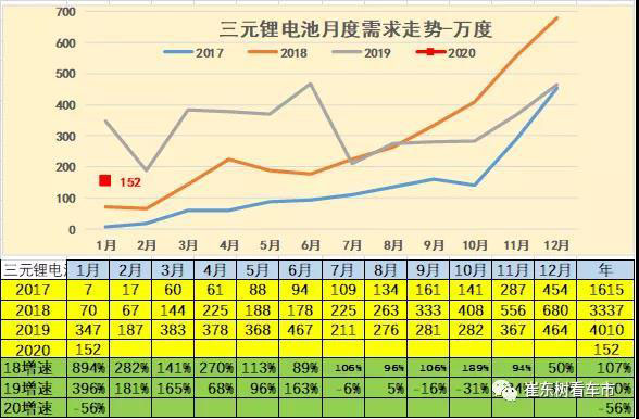 2019年是延續(xù)18年的政策的慣性增長,因此今年1月月的調(diào)整特征使新能源汽車電池需求放緩。