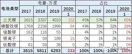 三元鋰占比提升趨勢明顯。2019年的三元電池占比達(dá)到64%,較18年上升7個(gè)百分點(diǎn)。20年1月的三元電池占比達(dá)到65%,磷酸鐵鋰大降。錳酸鋰的需求逐步減弱。鈦酸鋰基本沒有市場。