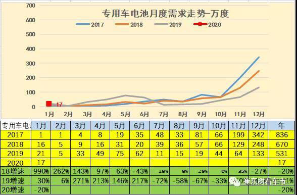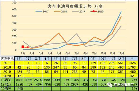 1月客車的電池需求較低,達(dá)到42萬度電,同比下降66%。