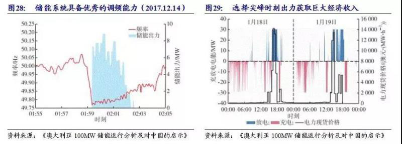 大型項(xiàng)目助推。2017年12月,南澳大利亞州100MW/129MWh電池儲(chǔ)能項(xiàng)目投運(yùn),是當(dāng)時(shí)全球最大的儲(chǔ)能項(xiàng)目Hornsdale Power Reserve。該項(xiàng)目產(chǎn)品由特斯拉提供,運(yùn)營(yíng)商是法國(guó)Neoen公司,主要用于調(diào)頻及新能源消納。該項(xiàng)目的背景是南澳大利亞州的大停電事件。澳大利亞政府向全球招標(biāo)大規(guī)模儲(chǔ)能項(xiàng)目,以解決電力系統(tǒng)穩(wěn)定問(wèn)題。2019年11月,Neoen宣布將該儲(chǔ)能項(xiàng)目擴(kuò)容50%。該項(xiàng)目主要通過(guò)調(diào)頻和現(xiàn)貨市場(chǎng)獲取經(jīng)濟(jì)利益。