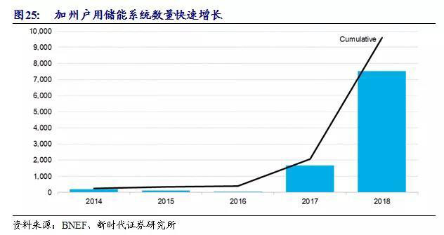 截至2018年底,美國(guó)儲(chǔ)能總并網(wǎng)量達(dá)23GW(含抽水蓄能),其中電化學(xué)儲(chǔ)能并網(wǎng)量達(dá)1GW,占比4.3%。美國(guó)儲(chǔ)能分為三類:戶用儲(chǔ)能、非戶用儲(chǔ)能(工商業(yè))和電表前儲(chǔ)能(發(fā)電和輸配電側(cè)),其中電表前儲(chǔ)能占比較高,戶用儲(chǔ)能整體呈穩(wěn)定增長(zhǎng)趨勢(shì)。