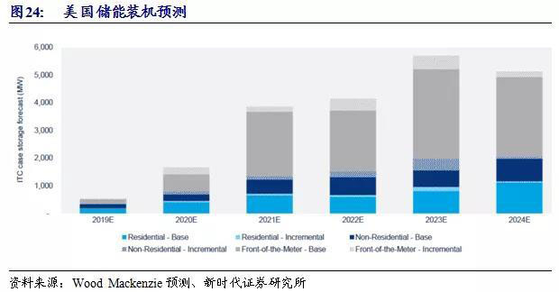 獨(dú)立儲(chǔ)能ITC政策有望出臺(tái)。當(dāng)前,美國(guó)業(yè)界正在促使美國(guó)政府出臺(tái)針對(duì)儲(chǔ)能的投資稅抵免政策(ITC)。據(jù)Wood Mackenzie預(yù)計(jì),如果獨(dú)立的儲(chǔ)能ITC政策出臺(tái),到2024年每年儲(chǔ)能新增裝機(jī)量將達(dá)到5.1GW,較基準(zhǔn)預(yù)測(cè)值4.8GW增加300MW/年。