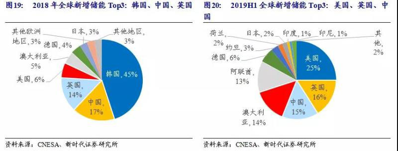 2018年及以前,韓國(guó)儲(chǔ)能發(fā)展較快。2018年韓國(guó)電化學(xué)儲(chǔ)能新增裝機(jī)約3GW,占全球新增的45%。