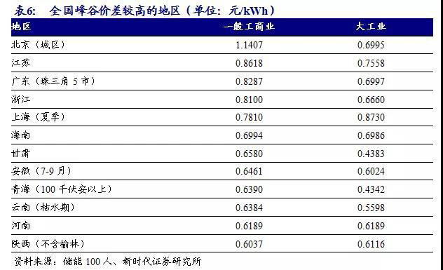 國(guó)內(nèi)峰谷價(jià)差較大的省份的主要為北京、長(zhǎng)三角、珠三角等地,其峰谷價(jià)差一般高于0.6元/kWh,也是國(guó)內(nèi)用戶側(cè)儲(chǔ)能發(fā)展較好的地區(qū)。