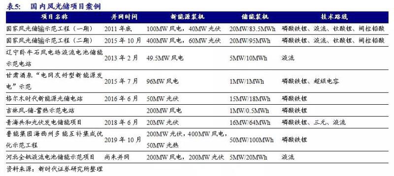 儲(chǔ)能配合新能源已有大量成熟案例。我國(guó)首個(gè)風(fēng)光儲(chǔ)輸示范工程位于河北省張家口市北部,于2011年底并網(wǎng),綜合運(yùn)用了磷酸鐵鋰、液流、鈦酸鋰、閥控鉛酸等多種技術(shù)路線,每年可以提升200小時(shí)的利用小時(shí)數(shù),有效解決了新能源的消納問(wèn)題。近年來(lái),還有青海共和光伏發(fā)電儲(chǔ)能項(xiàng)目、魯能集團(tuán)海西州多能互補(bǔ)集成優(yōu)化示范工程等大量新能源配套儲(chǔ)能項(xiàng)目投入使用。