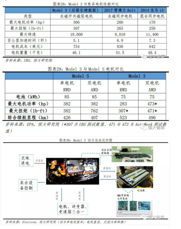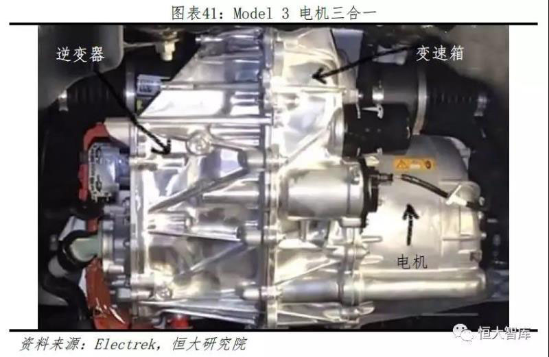 動(dòng)力總成集成優(yōu)化內(nèi)部結(jié)構(gòu),有利縮減車型降低成本,形成價(jià)格競(jìng)爭(zhēng)力。特斯拉一直保持包括電池包、BMS、冷卻系統(tǒng)、電機(jī)等動(dòng)力總成高度集成的特點(diǎn)。例如,無論是感應(yīng)電機(jī)還是永磁開關(guān)磁阻電機(jī),基本結(jié)構(gòu)都為變速箱、逆變器和電機(jī)三體合一的結(jié)構(gòu)。對(duì)比來看,每次推出新款車型,特斯拉都盡可能在原基礎(chǔ)上集成升級(jí)。對(duì)比Model S/X,Model 3的車體減小約20%、價(jià)格降低約50%,為保證整車性能,特斯拉加入更多系統(tǒng)芯片來控制部件協(xié)調(diào)運(yùn)作,并且將例如Model3的冷水機(jī)、電動(dòng)閥、液冷罐等零部件集成為冷卻液儲(chǔ)閥罐,即Super Bottle,通過算法調(diào)節(jié)內(nèi)部線路串并聯(lián)結(jié)構(gòu),減少例如PTC加熱器等零部件。
