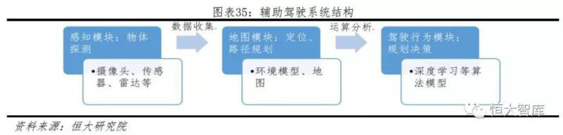 汽車輔助駕駛系統(tǒng)由軟硬件組合構(gòu)成,從結(jié)構(gòu)框架來看,主要分為感知模塊、地圖模塊、駕駛行為決策模塊。從流程來看,感知模塊通過雷達(dá)、傳感器、攝像頭等硬件,收集周圍環(huán)境探測(cè)到的物體數(shù)據(jù),地圖模塊提供定位和全局路徑規(guī)劃,數(shù)據(jù)共同傳輸?shù)今{駛行為模塊,為駕駛方案提供信息支持,最后決策模塊控制車體轉(zhuǎn)向、加速等實(shí)施行為。
