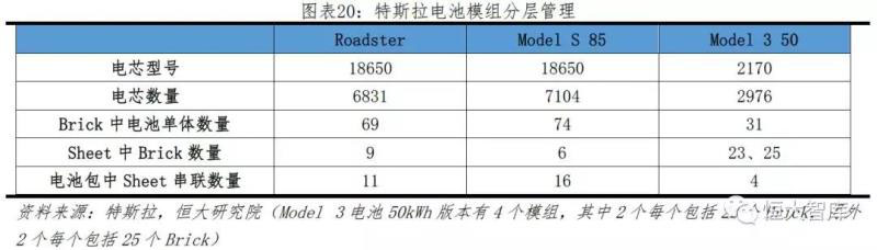 二、串并聯(lián)組合、分層管理模式優(yōu)化模組結(jié)構(gòu),提高電池充放電能力。特斯拉電池采用特有的串并聯(lián)方式,按照“單體電池-brick-sheet-pack”順序進(jìn)行分層管理。例如,特斯拉將Roadster電池系統(tǒng)的6831節(jié)電池分成不同的子單元(4個(gè)模組中2個(gè)為23Brick/module,另外2個(gè)為25Brick/module,即2*23*31+2*25*31)進(jìn)行并聯(lián)和串聯(lián),多組串聯(lián)和平板的設(shè)計(jì),極大增加電池鋪設(shè)數(shù)量和使用效率,從而提高整車動(dòng)力性能和續(xù)航里程。