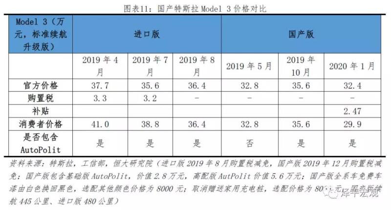 國(guó)產(chǎn)Model 3以低價(jià)策略攪動(dòng)內(nèi)地新能源汽車市場(chǎng)。作為國(guó)際化的重要戰(zhàn)略之一,特斯拉高度重視內(nèi)地新能源汽車市場(chǎng),并于上海自建超級(jí)工廠,由于國(guó)內(nèi)人工費(fèi)用、固定資產(chǎn)費(fèi)用較低,且上海市政府以貸款優(yōu)惠政策吸引,特斯拉上海工廠的資本開支較美國(guó)工廠低65%。國(guó)產(chǎn)特斯拉將降價(jià)切入中高端市場(chǎng),入門級(jí)Model 3價(jià)格低于30萬元,并于2019年底完成首批員工交付。此次調(diào)價(jià)由三方面組成,第一方面,1月3日特斯拉官方宣布準(zhǔn)續(xù)航升級(jí)版從35.58萬元下調(diào)至32.38萬元,降價(jià)幅度高達(dá)3.2萬元。第二方面,于2019年12月6月入選第11批《新能源汽車推廣應(yīng)用推薦車型目錄》,享受補(bǔ)貼24,750元/每輛。第三方面,于12月27日入選第29批《免征車輛購(gòu)置稅的新能源汽車車型目錄》,享受購(gòu)置稅減免。三方面因素促成Model3入門價(jià)格從35.58萬元下降至29.9萬元,對(duì)比2019年4月進(jìn)口版本,降價(jià)幅度高達(dá)38.8%。
