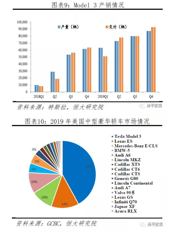Model3可能對(duì)中國(guó)中高端傳統(tǒng)汽車以及新能源汽車市場(chǎng)造成巨大沖擊。從傳統(tǒng)汽車市場(chǎng)來看,2019年1-11月中國(guó)傳統(tǒng)中高端汽車(28-42萬元區(qū)間)銷量為136.1萬輛,占傳統(tǒng)汽車銷量5.9%,主要以?shī)W迪A4L、奔馳C系、別克GL8、寶馬3系等ABB車系為主。從新能源汽車市場(chǎng)來看,2019年1-11月銷量為104.3輛,其中純電動(dòng)汽車銷量為83.2萬輛,主要以中低端車型為主,因此Model 3競(jìng)爭(zhēng)目標(biāo)主要為比亞迪唐、蔚來ES6等。目前,特斯拉上海工廠產(chǎn)能為15萬輛/年,預(yù)計(jì)2020年Model 3將占中國(guó)新能源汽車市場(chǎng)12%以上份額。