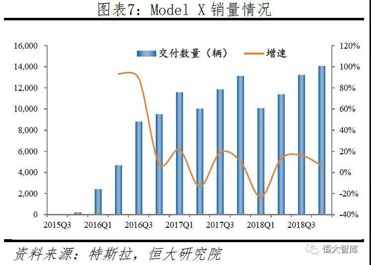 2015年第三季度,搭載鷹翼門豪華SUV Model X正式交付。相較Model S,Model X在性能上并沒有太多的創(chuàng)新,兩者的用戶定位與價(jià)格也相仿,均屬“Master Plan”第二階段計(jì)劃。Model X主要為滿足需求更大的豪華SUV市場(chǎng),并豐富產(chǎn)品線。較ModelS銷量呈穩(wěn)定趨勢(shì),ModelX依舊保持增長(zhǎng),目前全球總銷量超12萬輛,在美國(guó)大中型豪華SUV市場(chǎng)占有率與奔馳GLE、寶馬X5等競(jìng)品接近。