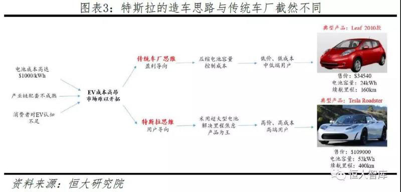 特斯拉以高端小眾電動(dòng)跑車切入汽車行業(yè)。汽車是典型的技術(shù)密集與資本密集型行業(yè),也是初創(chuàng)企業(yè)存活幾率最低的行業(yè)之一。無論生產(chǎn)制造工藝、供應(yīng)鏈管理或是企業(yè)品牌,特斯拉初期都無法比擬有著幾十年甚至上百年積淀的傳統(tǒng)車企。況且在當(dāng)時(shí)高達(dá)$1000/KWh的電池成本與產(chǎn)業(yè)鏈配套尚不成熟的客觀環(huán)境下,不論造一輛跑車還是經(jīng)濟(jì)實(shí)用型轎車的成本都相當(dāng)昂貴。特斯拉的思路非常清楚:既然第一款車注定虧錢,不如先針對(duì)高收入群體推出高端電動(dòng)跑車,高舉高打,徹底顛覆人們對(duì)于電動(dòng)車?yán)m(xù)航里程短、性能差的認(rèn)知。
