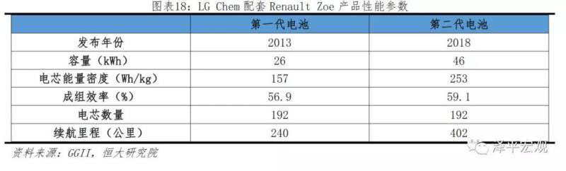 2018年韓國LG Chem動(dòng)力電池出貨量約8.5GWh,全球市場(chǎng)份額8%,累計(jì)出售約2億塊電池、搭載新能源汽車超21萬臺(tái),合作車企包括現(xiàn)代、起亞、沃爾沃等。LG Chem主打高鎳三元軟包電池,以NCM622為主,其次為NCM811,電芯能量密度約在200-250Wh/kg左右,根據(jù)規(guī)劃,預(yù)計(jì)2020年達(dá)到續(xù)航里程500公里、快充時(shí)間30分鐘、能量密度700Wh/L。