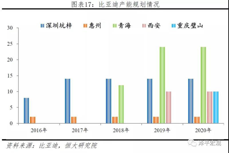 產(chǎn)能規(guī)劃方面,2018年比亞迪實(shí)際產(chǎn)能約28GWh,其中三元電池18GWh、磷酸鐵鋰電池10GWh。工廠集中內(nèi)地,分別為惠州(2GWh)、深圳(14GWh)、青海(12GWh)三地。根據(jù)目前披露的規(guī)劃,未來產(chǎn)能擴(kuò)充包括青海工廠二期12GWh、2018年7月與長(zhǎng)安汽車合資簽訂10GWh、2018年8月重慶20GWh、2018年9月西安30GWh,此外2019年5月簽訂的長(zhǎng)沙寧鄉(xiāng)工廠還在規(guī)劃中。