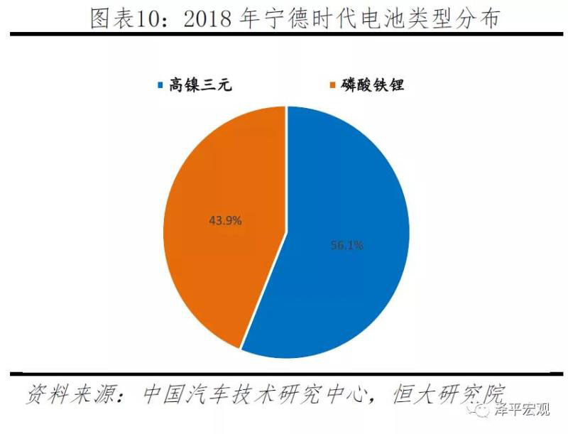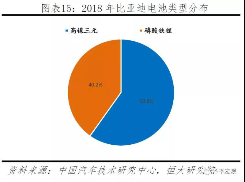 比亞迪動(dòng)力電池主要用于自供,產(chǎn)品類型有方形高鎳三元和磷酸鐵鋰電池兩種,2018年出貨量13.8GWh,全球占比13%、排為第三。比亞迪不斷提高高鎳三元電池裝機(jī),由2017年15%提升為2018年60%。