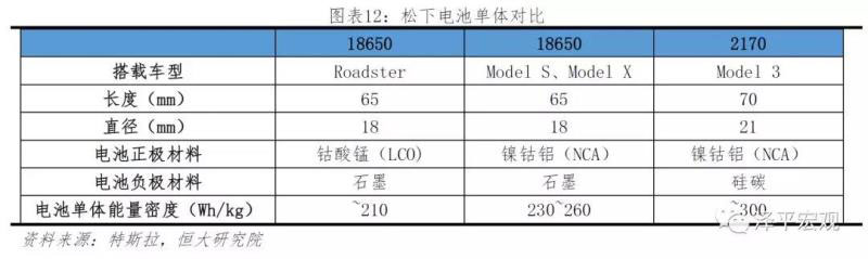 松下與特斯拉深度綁定,采用鎳鈷鋁酸鋰(NCA)路線,并以18650和21700圓柱電池聞名。橫向來看,當(dāng)競(jìng)爭(zhēng)對(duì)手2013年做磷酸鐵鋰電池與NCM111時(shí),特斯拉和松下已經(jīng)著手使用NCA三元電池;當(dāng)競(jìng)爭(zhēng)對(duì)手2017年開始由低鎳材料過渡到NCM622/NCM811高鎳正極材料時(shí),特斯拉和松下探索更高能量密度的硅碳負(fù)極應(yīng)用。縱向來看,特斯拉和松下一直堅(jiān)持使用NCA作為電芯正極材料,并不斷提高鎳含量、降低鈷含量。對(duì)比最新Model 3與Roadster兩款汽車,特斯拉平均每款車鈷含量降低約60%。根據(jù)特斯拉2018年一季度報(bào)告,Model 3的電芯能量密度超過其他任何一款競(jìng)品所使用的電芯,其鈷含量低于主流電芯制造廠即將量產(chǎn)的下一代NCM811電芯產(chǎn)品。